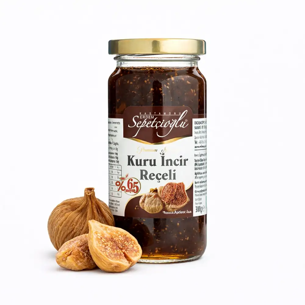 Sepetçioğlu Kuru İncir Reçeli, %65 meyve oranı sayesinde kuru incirin kendine özgü yoğun aromatik yapısını belirgin şekilde yansıtır. Lifli yapısı ve dolgun kıvamı ile klasik reçellere göre daha tok bir lezzet profili sunar.