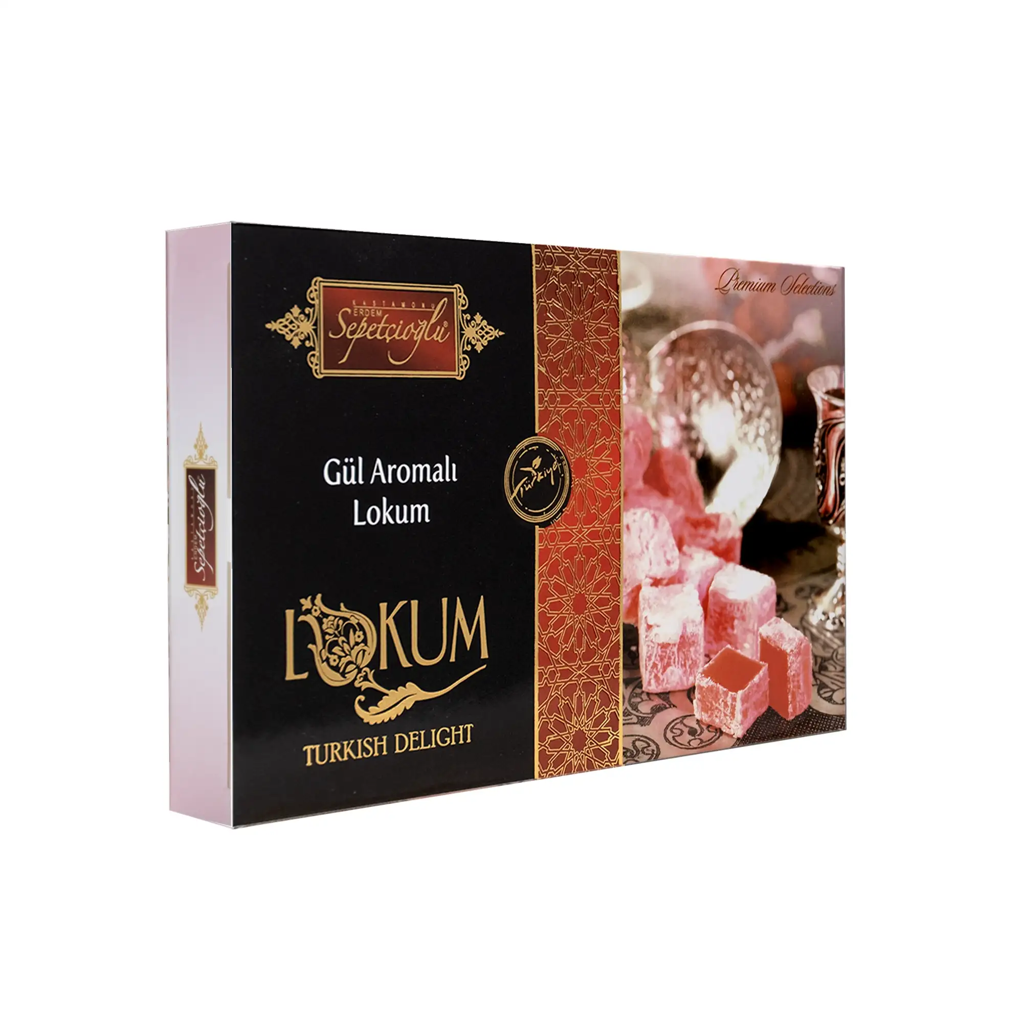Yumuşak dokusuyla tadındaki farkı hissettiren kendi imalatımız olan Gül Aromalı Lokumlarımız içindeki gül aroması sayesinde tatlıseverlere farklı bir lezzet şöleni sunmaktadır. Kahve sunumlarının vazgeçilmezi olan gül aromalı lokum, Sepetçioğlu kalitesi ve ustalığı ile birleşmiş ağzının tadını bilenleri lezzet durağında beklemektedir.